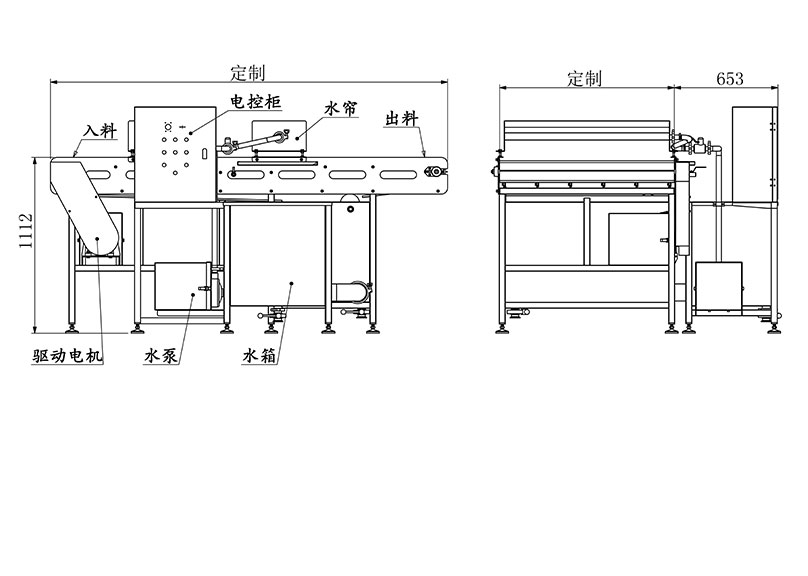 3)水帘包冰衣机根据冻品不同,设计不同深度的水位;